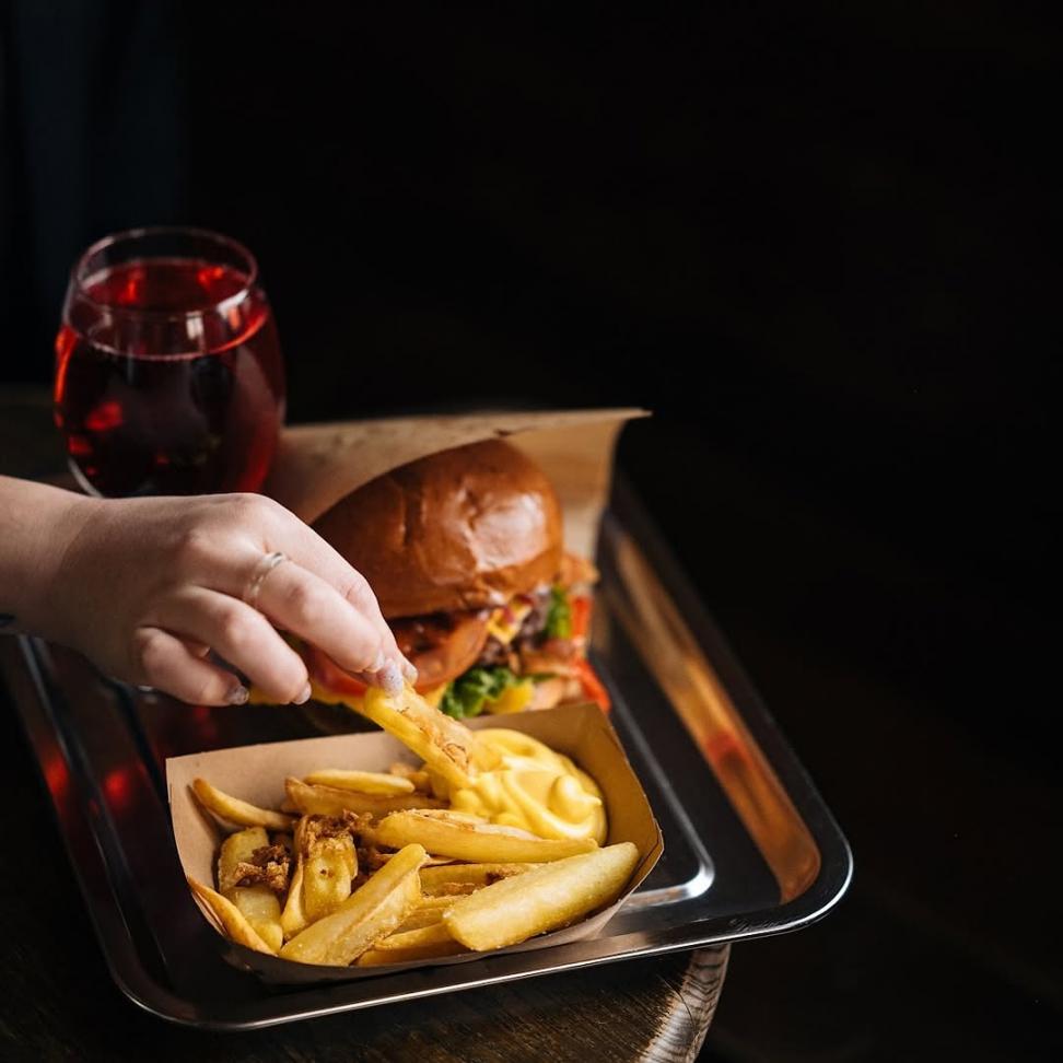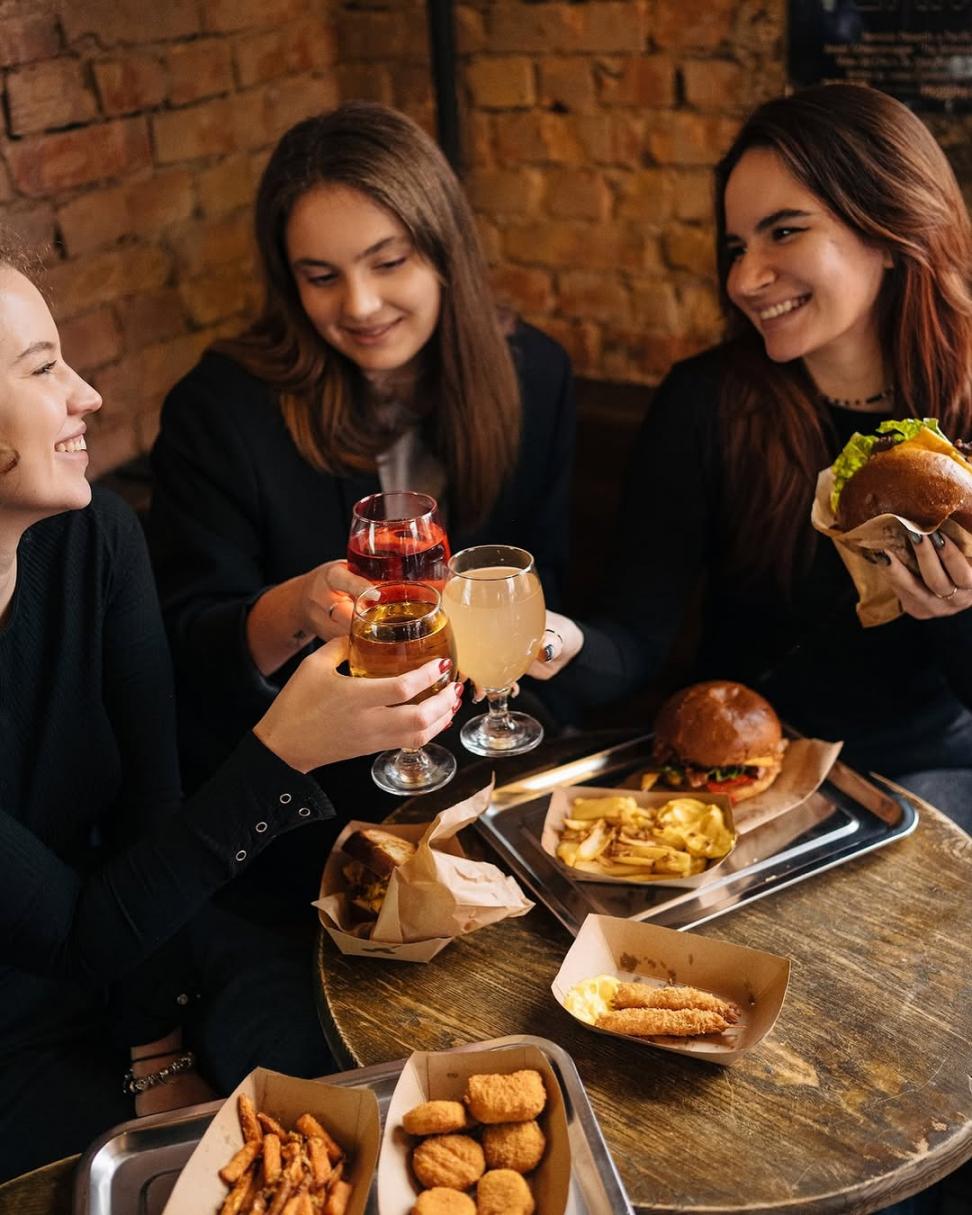 Велетенські бургери, смачнющі хот-доги, шайбове місце, сидр-сидр-сидр, чізі-батат, графіті, трохи неону та суцільний гастрономічний меджік.